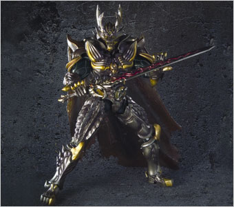 原型監修:竹谷隆之によるイクイップ&プロップシリーズ第6弾、暗黒騎士キバが登場!全高190ミリのキバは龍崎駈音に換装が可能。劇中プロップとして駈音が身に着けていたペンダントを模したオブジェが付属しています。